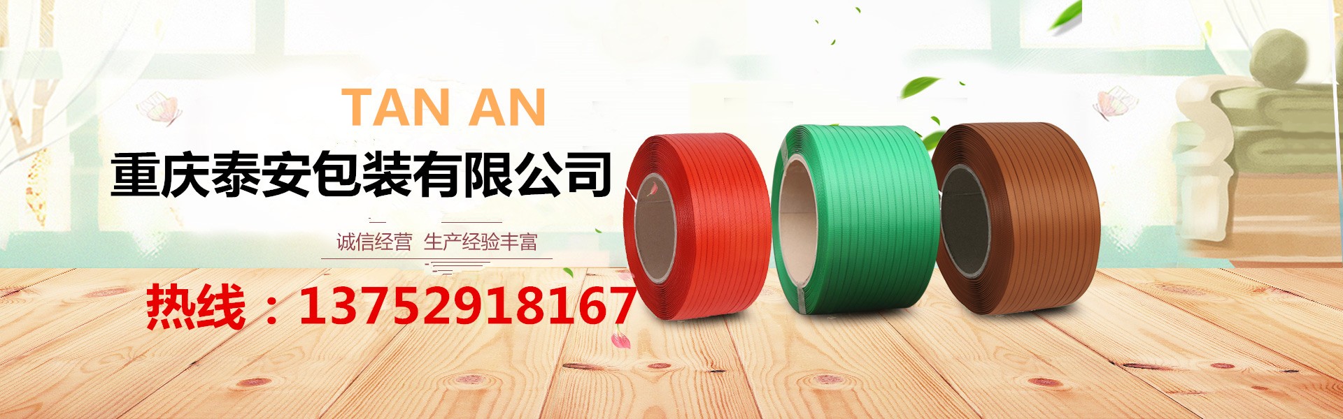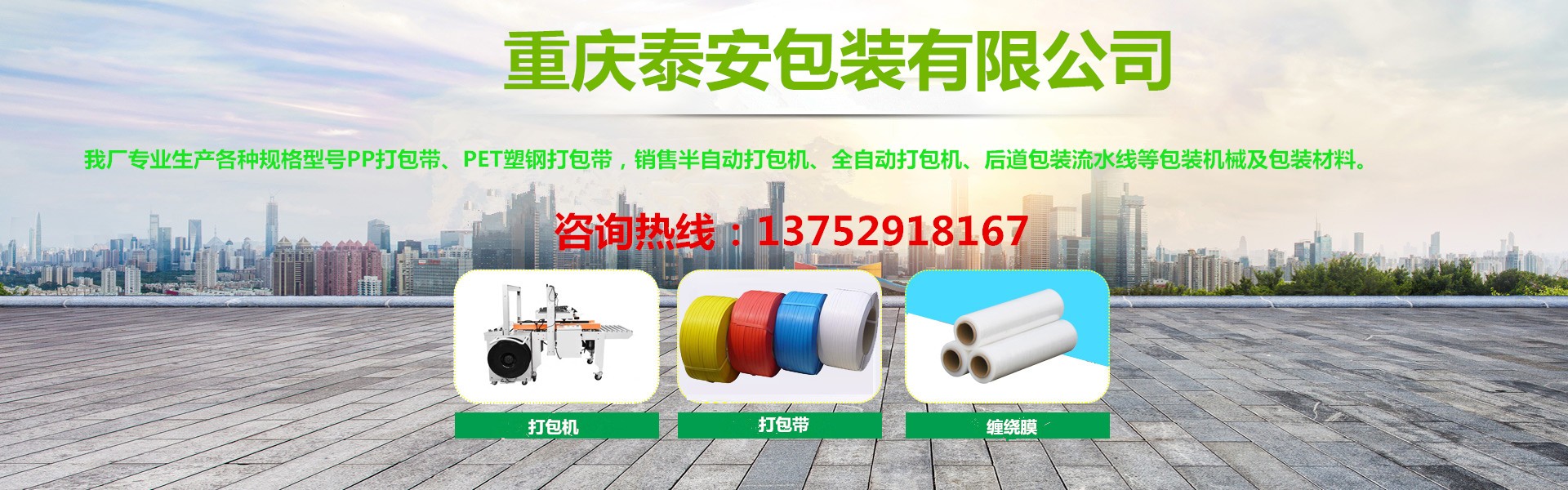 重慶泰安包裝有限公司(電話:13752918167)是專業(yè)生產(chǎn)各種打包帶、塑鋼帶、纏繞膜、膠帶,銷售打包機、纏繞機、封箱機、無人化流水線等各種包裝機械、包裝制品、包裝材料一體化的優(yōu)秀包裝企業(yè),始終堅持“穩(wěn)步擴張、精益管理”的方針,堅持“換位思考,了解客戶需求,主動服務(wù),超越客戶期待”的服務(wù)理念,以熱忱的服務(wù)、優(yōu)良的品質(zhì)、靈活的機制、創(chuàng)新的技術(shù),向各新老客戶提供最優(yōu)質(zhì)、優(yōu)價的產(chǎn)品和服務(wù),具有對系列產(chǎn)品自主研發(fā)創(chuàng)新能力,能夠獨立根據(jù)用戶要求制版打樣。近十年來受到廣大客戶的信任,產(chǎn)品銷售遍及全國各大城市,與客戶形成自由平等、互利互惠的戰(zhàn)略合作關(guān)系,平均年銷售量2000多噸。